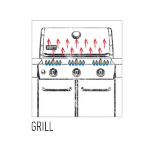 Die Wärme zirkuliert im Grill um größeres Grillgut mit einer längeren Garzeit. Diese Methode eignet sich perfekt für Braten, Brot und Kuchen.